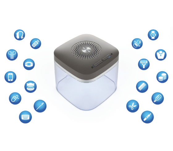 - piemērots visu veidu dzirdes aparātu, auss ieliktņu, skaņas monitoru un dzirdes sistēmu dezinfekcijai